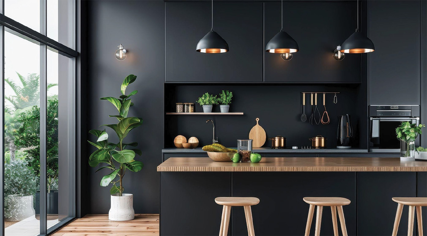- Bold and dramatic kitchens: Dark cabinets, statement lighting, and high-contrast elements bring a modern, sophisticated edge to your space. Matte black or deep navy hues paired with gold accents can add a luxurious touch.